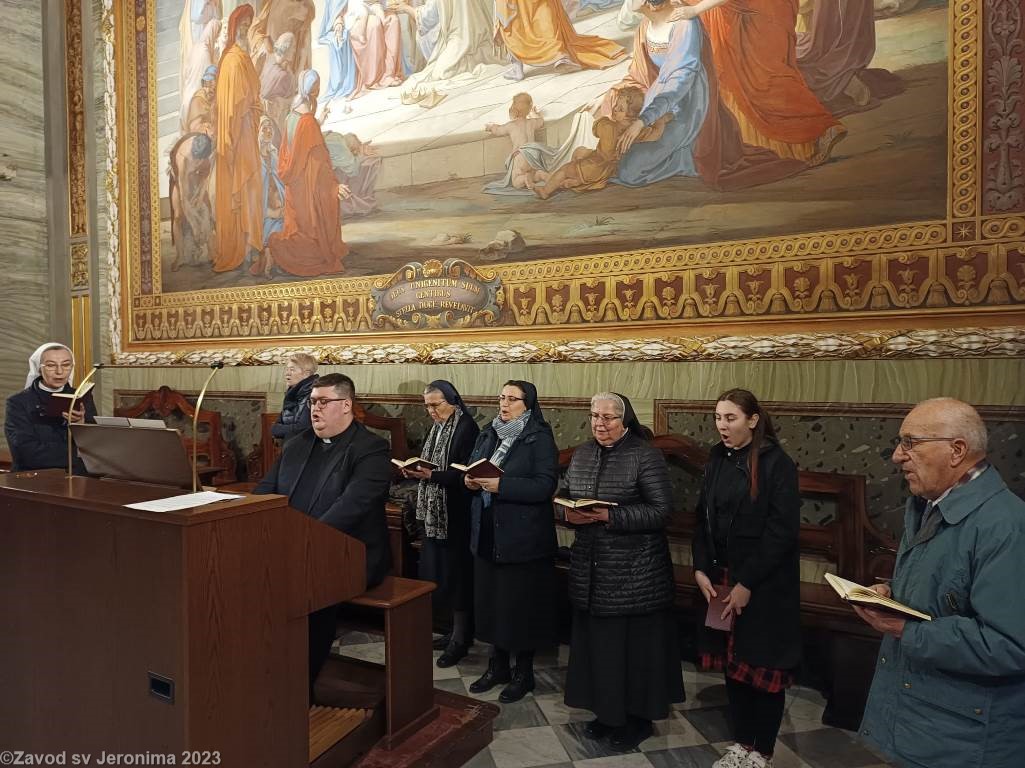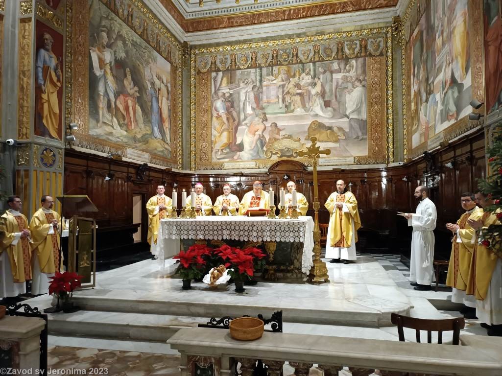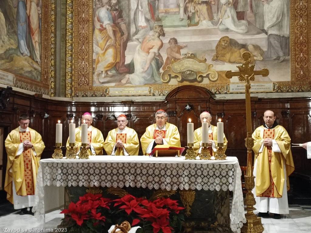 U petak 6. siječnja 2023., na svetkovinu Bogojavljenja, u Hrvatskoj crkvi sv. Jeronima u Rimu svečano je euharistijsko slavlje na hrvatskom jeziku, u kojem se na poseban način molilo za blagopokojnog papu emeritusa Benedikta XVI., predvodio kardinal Vinko Puljić, vrhbosanski nadbiskup u miru u zajedništvu sa zagrebačkim nadbiskupom kardinalom Josipom Bozanićem, zadarskim nadbiskupom mons. Želimirom Puljićem i požeškim biskupom mons. Antunom Škvorčevićem te nekoliko drugih svećenika.