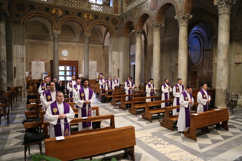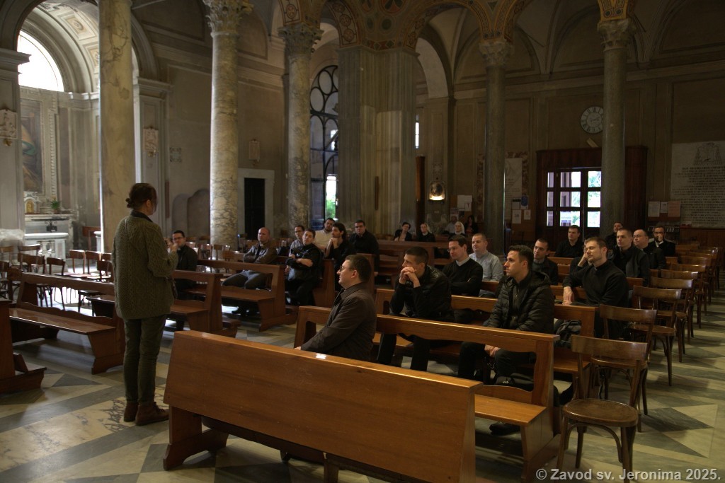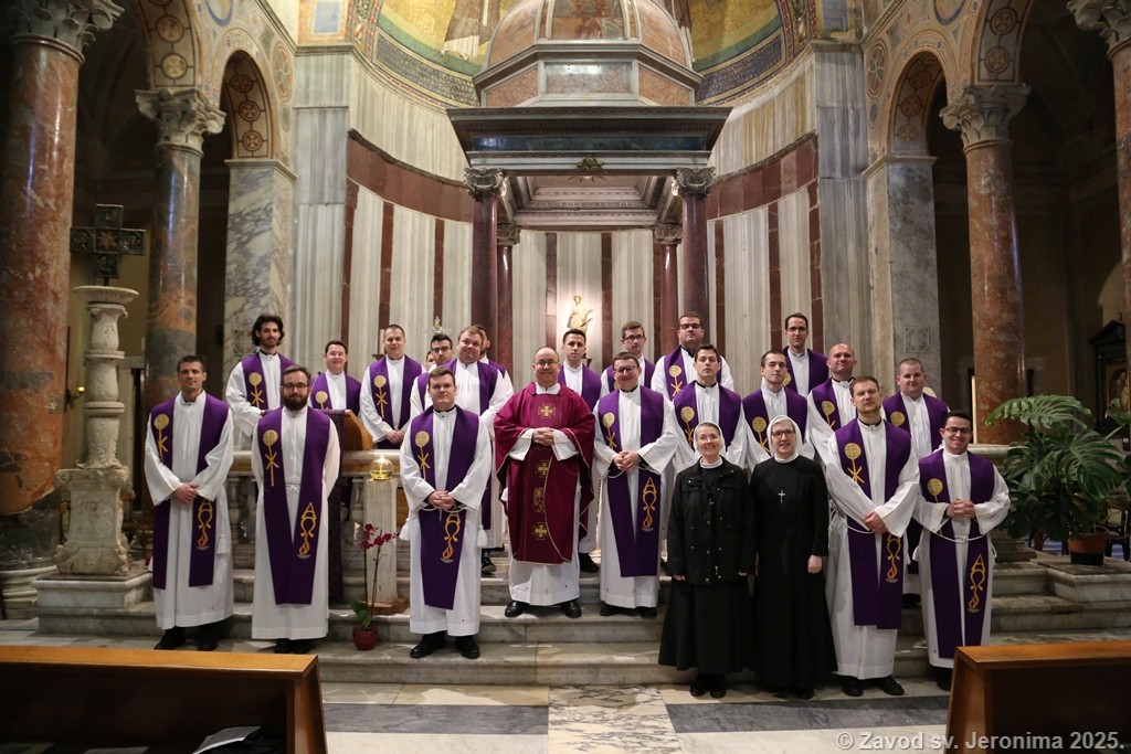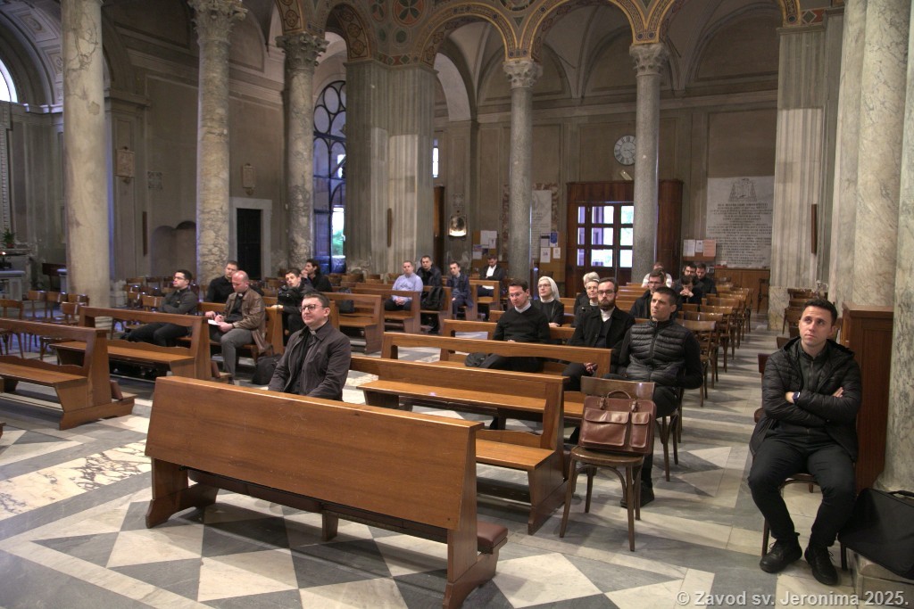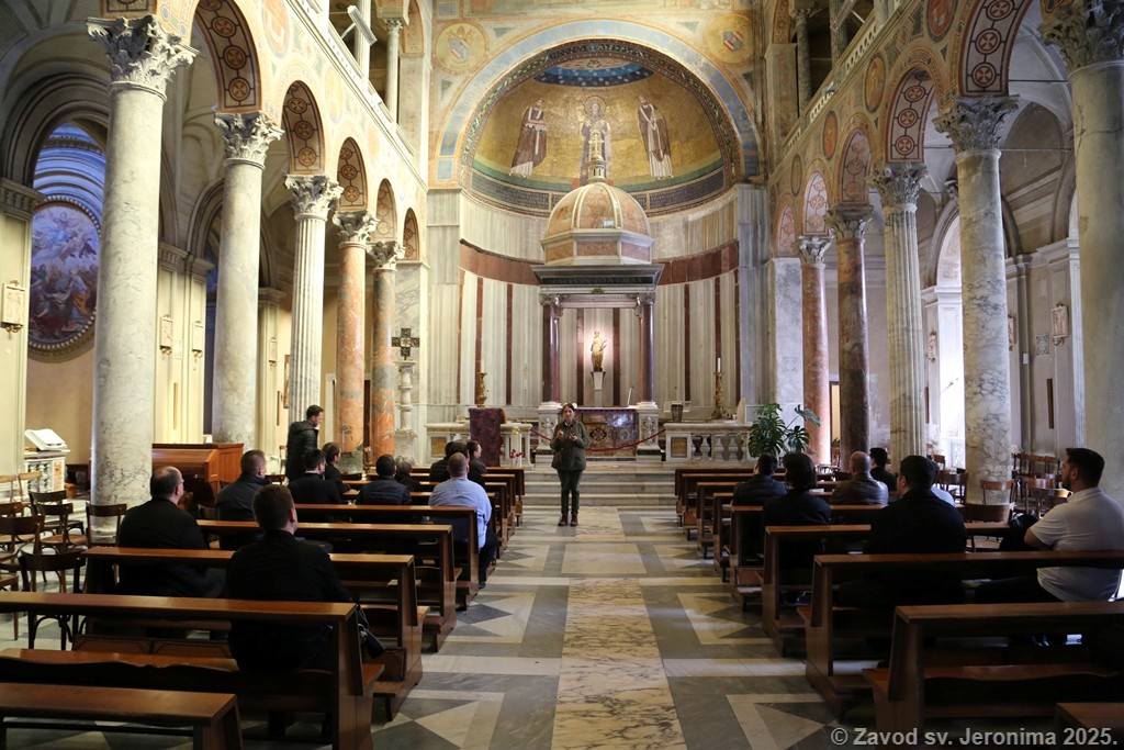 U subotu 5. travnja održana je mjesečna obnova svećenika-studenta, časnih sestara i djelatnica Papinskog hrvatskog zavoda sv. Jeronima. Zavodska zajednica predvođena rektorom Markom Đurinom u popodnevnim se satima uputila prema bazilici sv. Agneze izvan zidina u Rimu. Nakon razgledavanja katakombi te posjeta grobu sv. Agneze uslijedio je duhovni nagovor. p. Alana Modrića, duhovnika Zavoda. Duhovnik se osvrnuo na duboku poruku liturgije Velikog petka i tradicionalnog napjeva „Puče moj“, ističući važnost pamćenja povijesti spasenja kao ključa za razumijevanje sadašnjosti i otvaranje budućnosti.