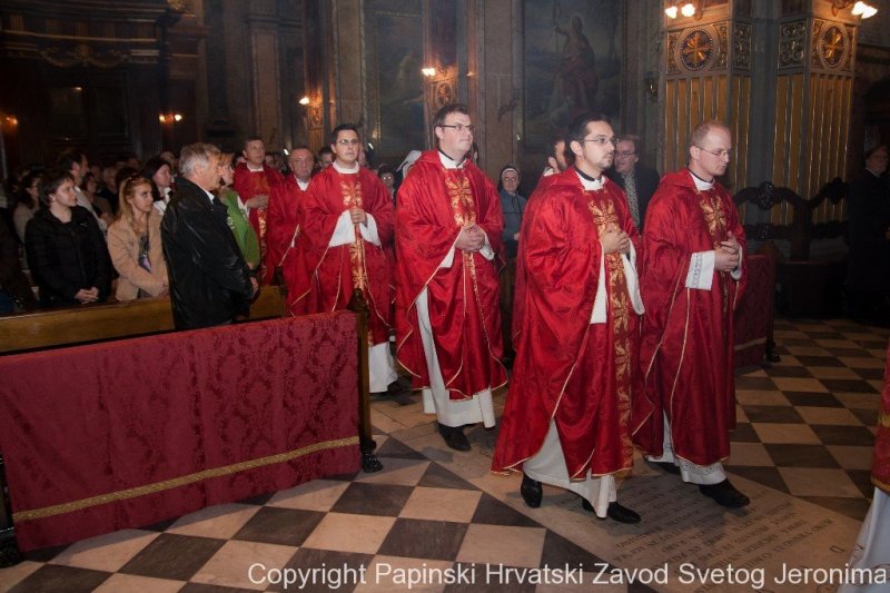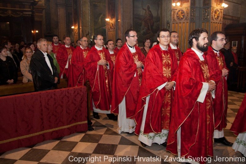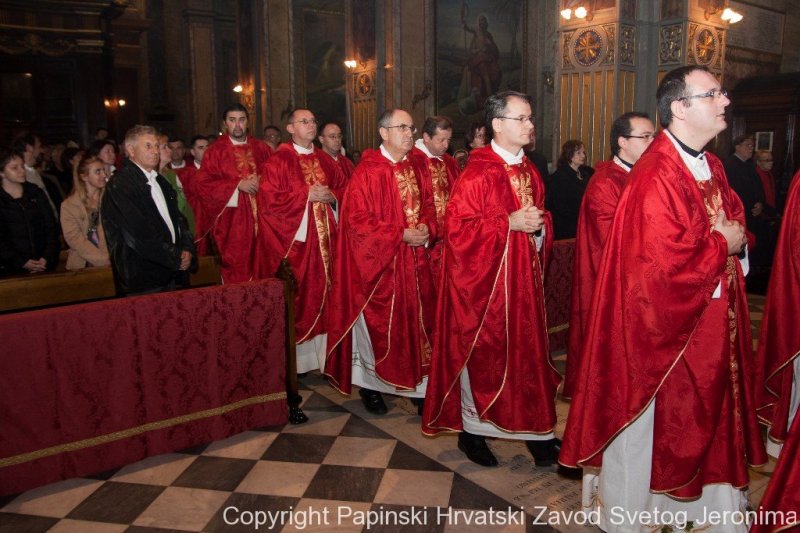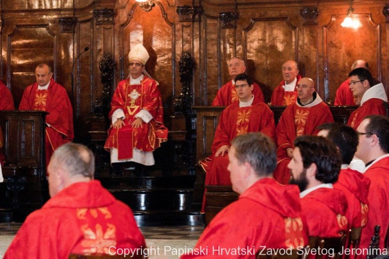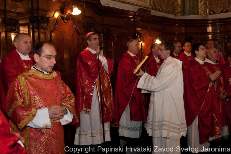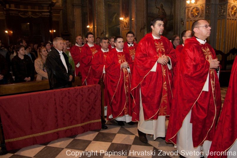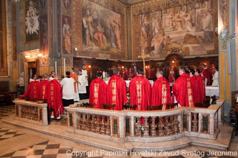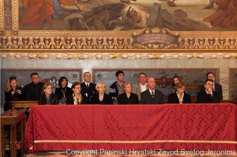 Ljepoti liturgijskoga slavlja, uz asistenciju hrvatskih bogoslova iz zavoda Germanicum i đakona Davora Berezovskog, pridonijelo je i pjevanje mješovitoga zbora crkve Sv. Jeronima pod ravnanjem don Željka Majića i u pratnji orgulja Martine Lončar, studentice orgulja na Papinskome institutu za crkvenu glazbu. Proslavi su nazočili i veleposlanik Republike Hrvatske pri Svetoj Stolici Emilio Marin, veleposlanica BiH pri Svetoj Stolici Jasna Krivošić-Prpić, veleposlanik Makedonije pri Svetoj Stolici Gjoko Gjorgjevski, veleposlanik Crne Gore pri Svetoj Stolici Antun Sbutega, kao i brojni predstavnici iz hrvatskog veleposlanstva u Italiji.