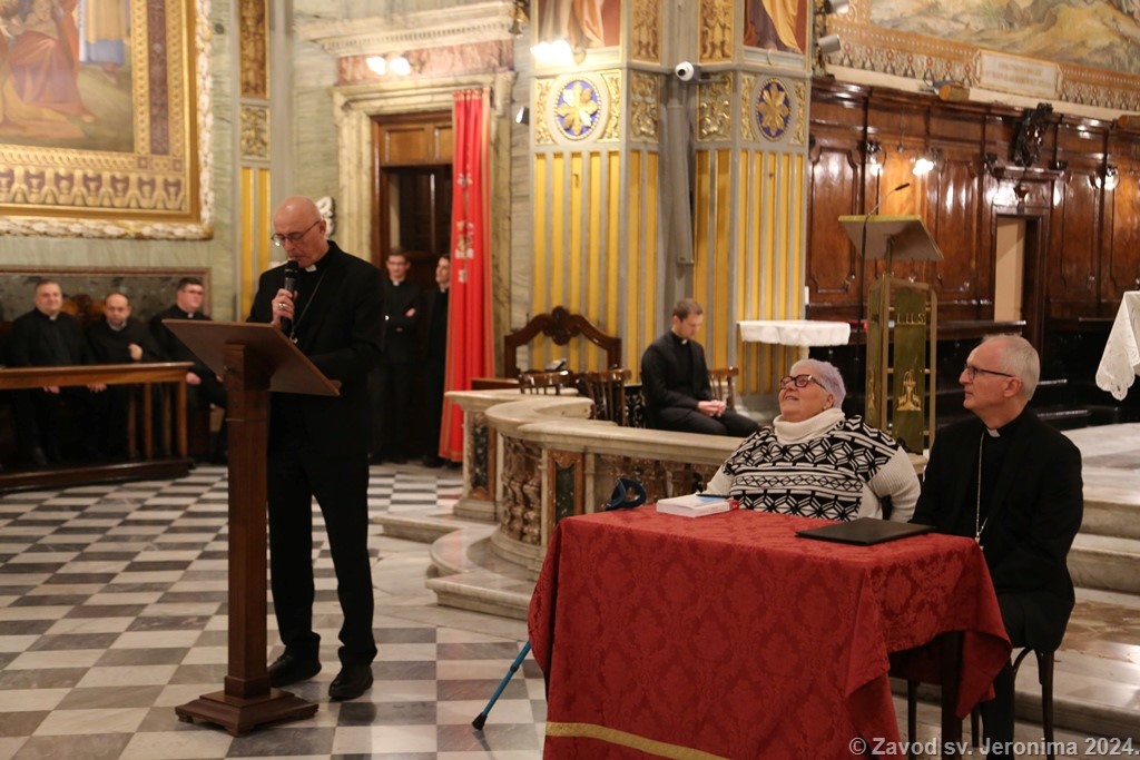 U nedjelju 17. studenoga, nakon sv. Mise i proslave blagdana sv. Nikola Tavelića u Hrvatskoj crkvi sv. Jeronima u Rimu koju je predvodio apostolski nuncij u Republici Hrvatskoj mons. Giorgio Lingua, održano je predstavljanje knjige mons. Giorgia Lingue „…da svijet uzvjeruje“ („Perché il mondo creda“) koja je nakon hrvatskoga, dobila svoje izdanje i na talijanskom jeziku. O knjizi su govorili dr. Branimir Stanić, urednik Glasa Koncila, mons. Petar Rajić, apostolski nuncij u Italiji i San Marinu, te profesorica s Papinskog sveučilišta Gregoriana i voditeljica Centra za vjeru i kulturu “Alberto Hurtado” Stella Morra. Program promocije knjige vodio je vlč. Fabijan Štedul, a započeo je pjesmom „Zdravo, zvijezdo mora“ koju je otpjevao Zbor svećenika-studenata na čelu s vlč. Brunom Diklićem, inače studenta na studiju crkvene glazbu u Rimu.
