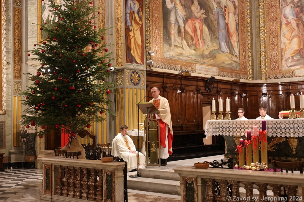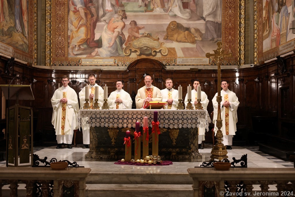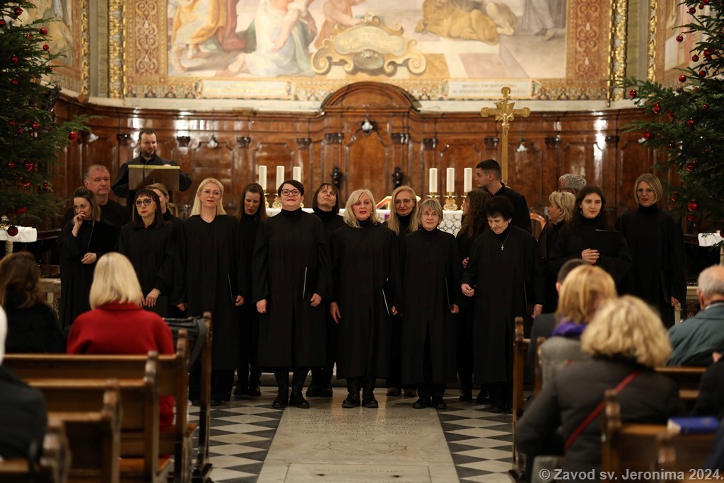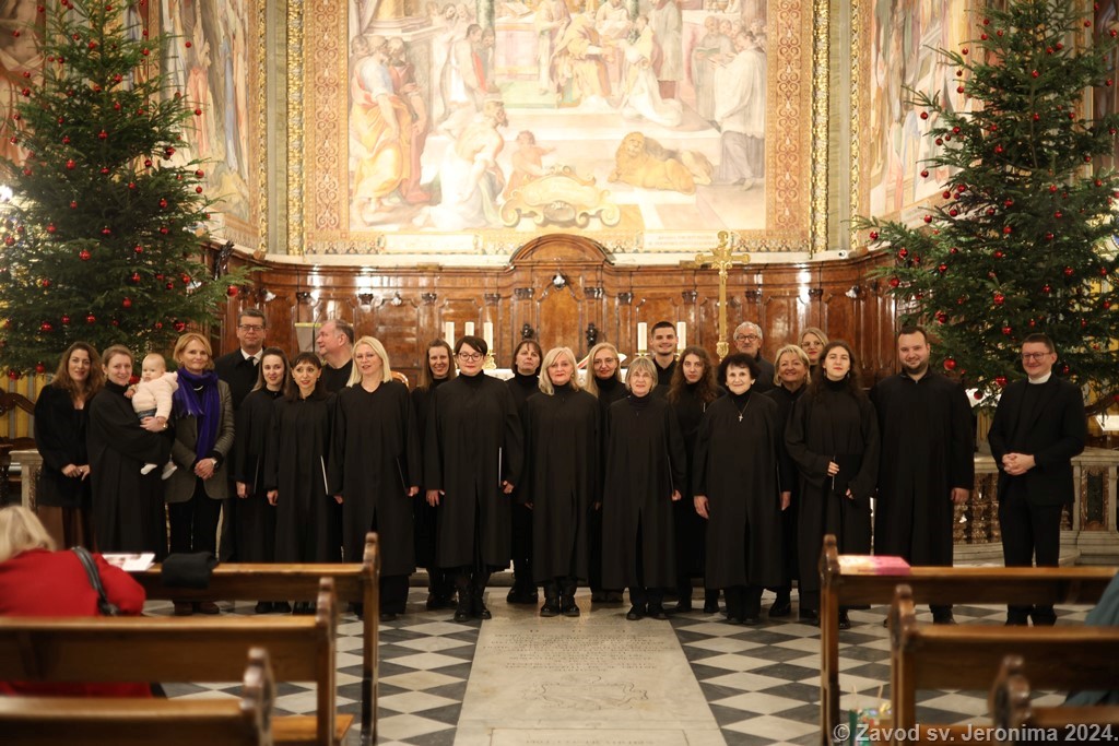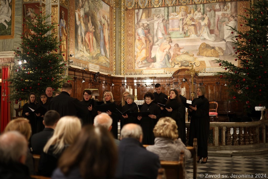Pjevački zbor Crux iz Ogulina pjevao je na redovitoj večernjoj svetoj misi na hrvatskom jeziku u Hrvatskoj crkvi sv. Jeronima u Rimu nedjelju 8. prosinca 2024. koju je predvodio član Zavoda sv. Jeronima Filip Sertić, svećenik Đakovačko-osječke nadbiskupije te je nakon svete mise u crkvi održao koncert hrvatskih adventskih pjesama. Na kraju svete mise i uoči koncerta sve je nazočne pozdravio rektor Zavoda i crkve Marko Đurin. Na misi i koncertu sudjelovali su, uz članove hrvatske rimske zajednice, i veleposlanik Republike Hrvatske u Italiji Jasen Mesić te otpravnica poslova u Veleposlanstvu Republike Hrvatske pri Svetoj Stolici Tea Zupičić.