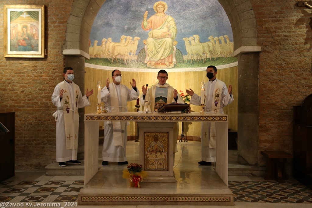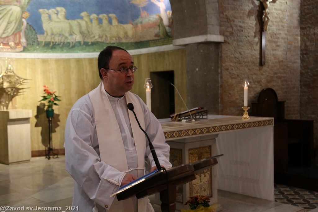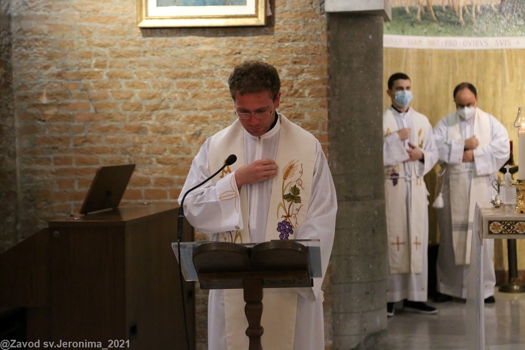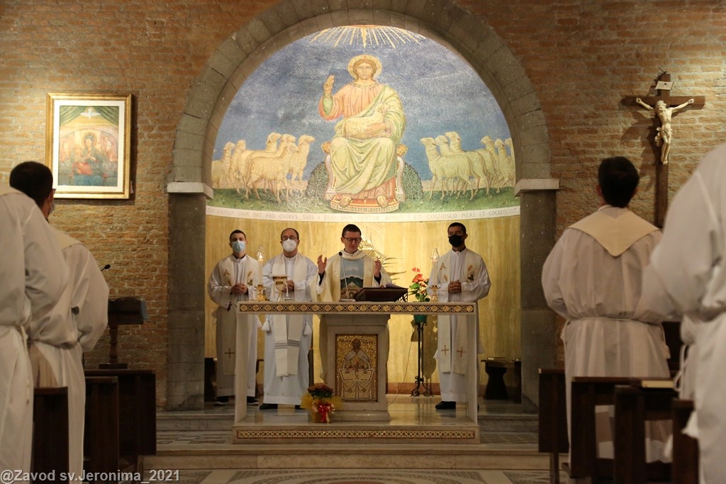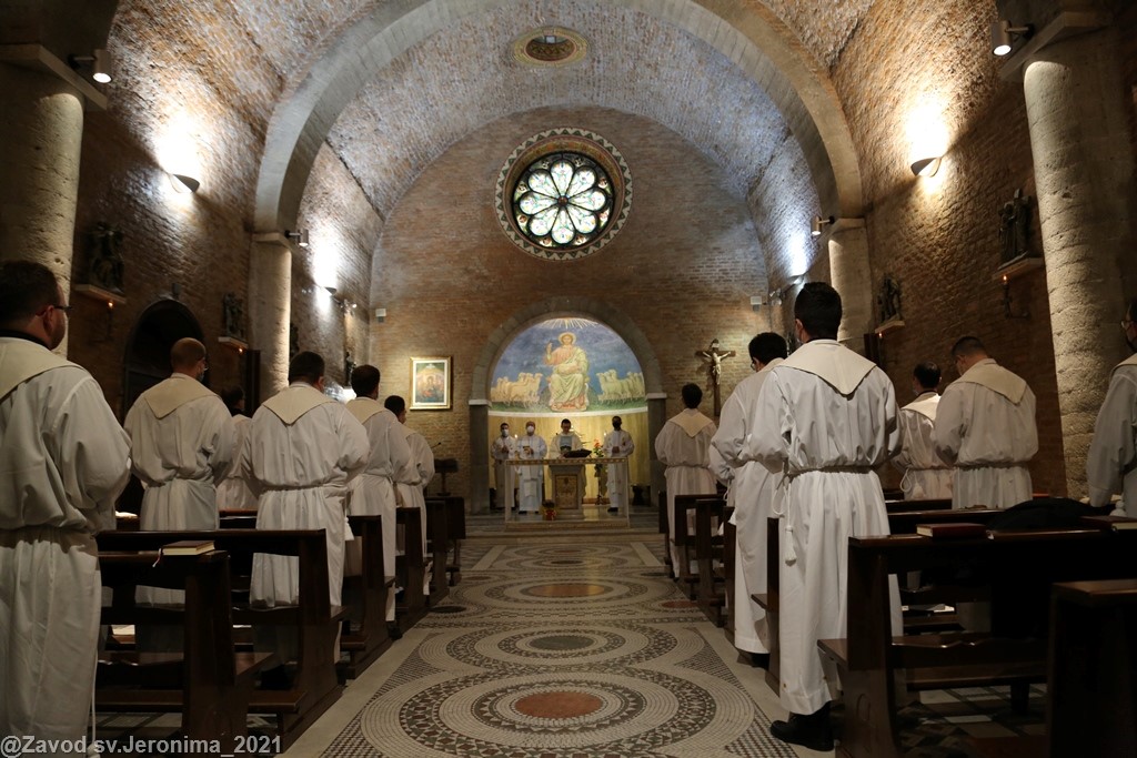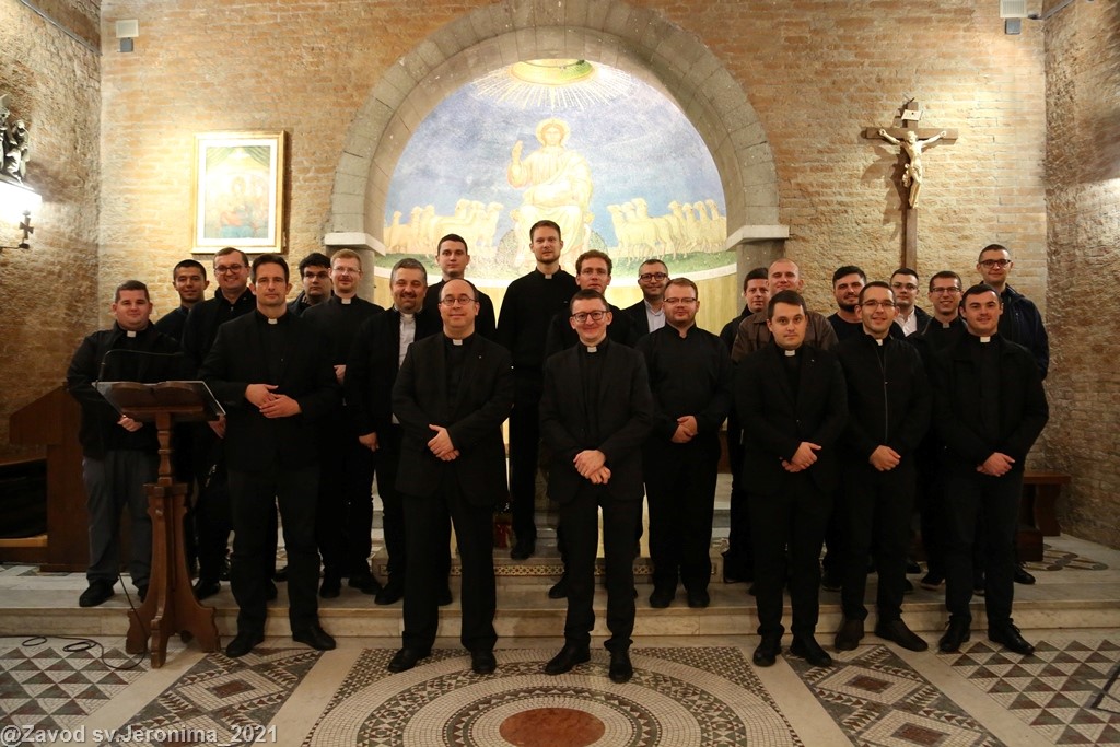 U subotu, 23. listopada 2021., svećenici Papinskog hrvatskog zavoda sv. Jeronima u Rimu predvođeni rektorom vlč. Markom Đurinom obavili su mjesečnu duhovnu obnovu u rimskom marijanskom svetištu Gospe od Božje Ljubavi (Santuario della Madonna del Divino Amore). Rekolekciju je predvodio p. Alan Modrić, duhovnik u Zavodu sv. Jeronima.