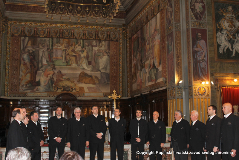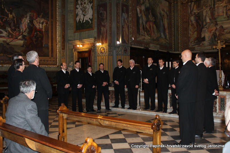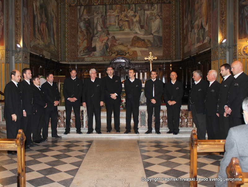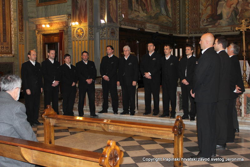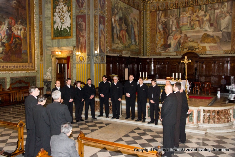 Na blagdan sv. Ćirila i Metoda, koji se u Rimu slavi 14. veljače, pratili su svojim pjevanjem svečano euharistijsko slavlje u starokršćanskoj bazilici Sv. Klementa. Misno je slavlje predvodio zagrebački nadbiskup kardinal Josip Bozanić u koncelebraciji sa šest kardinala, pet biskupa i preko stotinu svećenika iz različitih slavenskih zemalja, o čemu smo izvijestili na našim mrežnim stranicama.