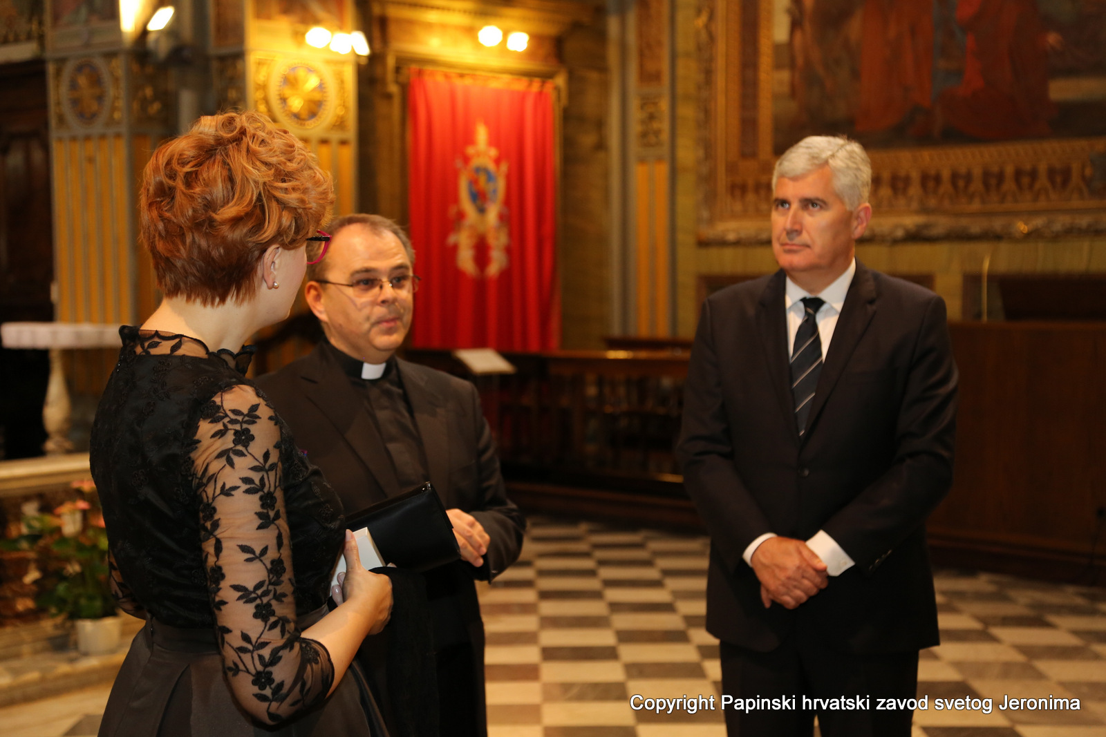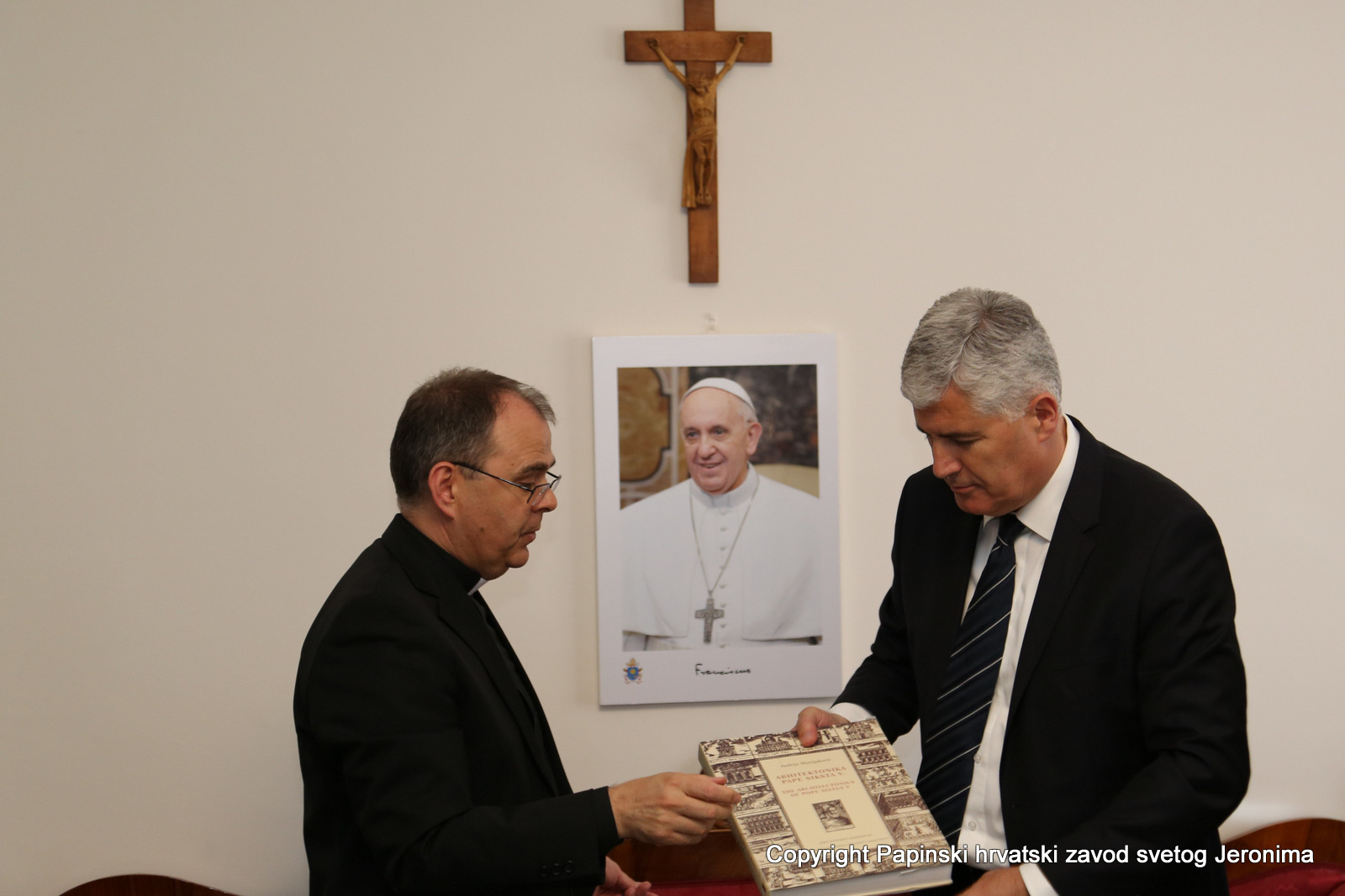 Vicerektor, preč. Marko Đurin, upoznao je izaslanstvo predsjednika s dugom poviješću Hrvatskog zavoda svetog Jeronima i njegovog djelovanja u „Vječnom gradu“. Oduševljeni ovim posjetom izaslanstvo predvođeno predsjednikom Čovićem se uputilo u posjet Vatikanskom tajnom arhivu.