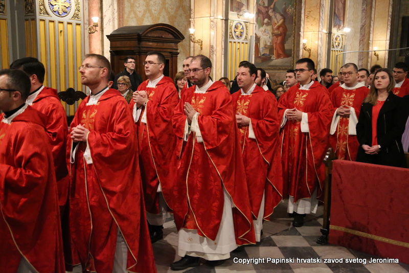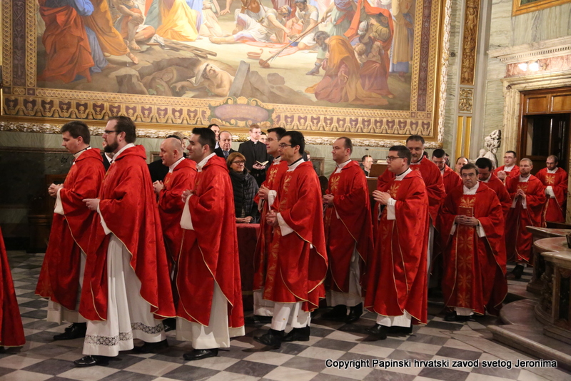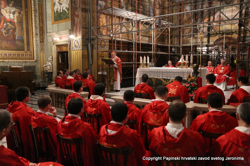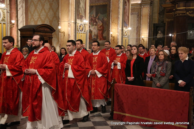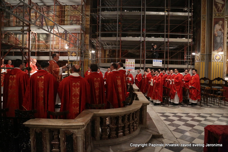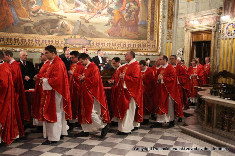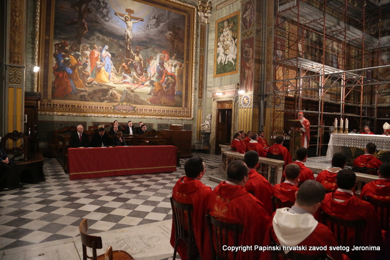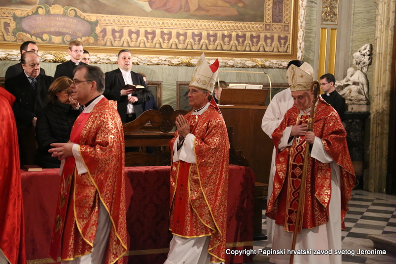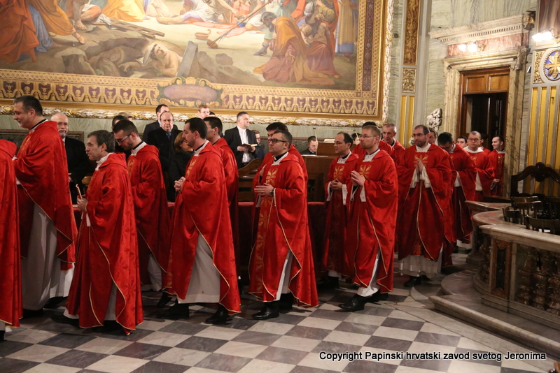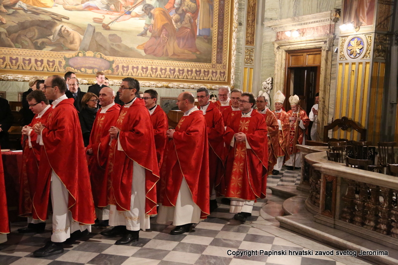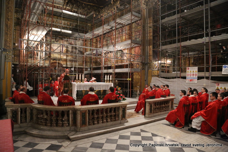 U liturgijskoj su asistenciji bili hrvatski bogoslovi iz Papinskoga rimskog velikog sjemeništa i iz Međunarodnoga crkvenog zavoda Sedes Sapientiae, a tijekom euharistijskoga slavlja pjevao je zbor hrvatskih svećenika u Rimu pod ravnanjem vlč. Josipa Vidasa.