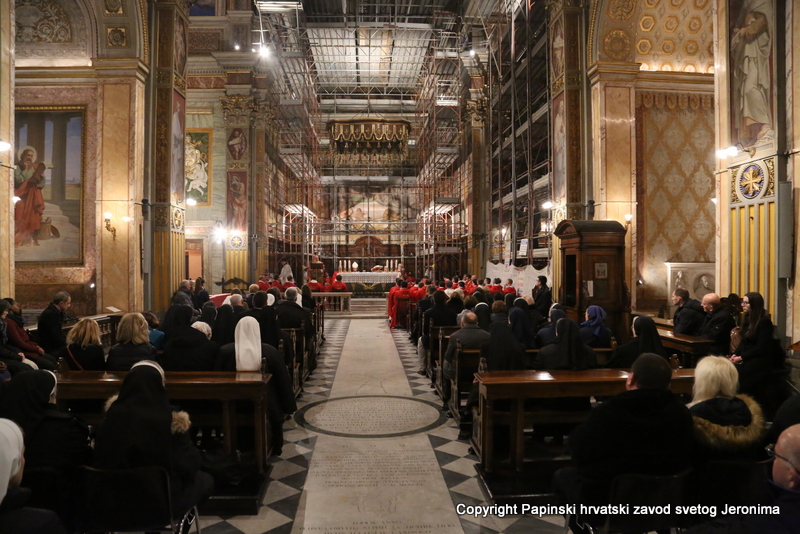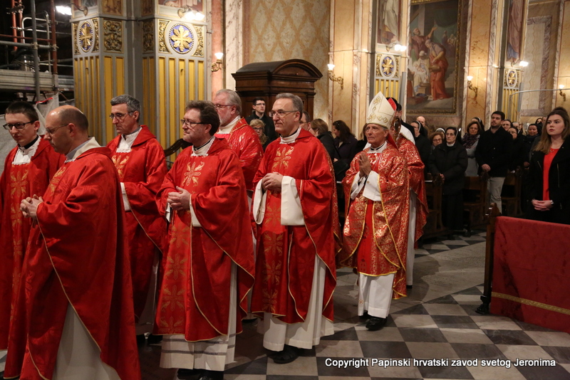 Hrvatska rimska zajednica proslavila je blagdan blaženoga Alojzija Stepinca, biskupa i mučenika, u subotu, 9. veljače 2019. u Hrvatskoj crkvi sv. Jeronima u Rimu, svečanim euharistijskim slavljem koje je predvodio kardinal Angelo Comastri, generalni vikar Njegove Svetosti za Vatikanski Grad i nadsvećenik Papinske Bazilike Sv. Petra. Koncelebrirali su apostolski nuncij nadbiskup Francisco-Javier Lozano, i šezdesetak svećenika, među kojima su bili, uz poglavare i studente Zavoda, rektori i predstavnici drugih papinskih zavoda i rimskih dikasterija te hrvatski svećenici i redovnici koji su na studiju ili službi u Rimu.
