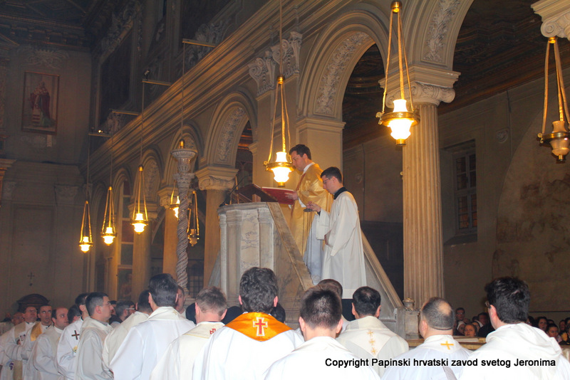 Kako proslavu blagdana svete braće svake godine organizira jedan od slavenskih zavoda, ove je godine ta častna obveza pripala Papinskome hrvatskom zavodu sv. Jeronima. Stoga je na početku euharistijskoga slavlja rektor msgr. Jure Bogdan izrazio svoju radost i zadovoljstvo što ove godine, točno na 1146. obljetnicu preminuća sv. Ćirila, može pozdraviti sve nazočne na ovoj proslavi, osobito uzorite kardinale i biskupe te članove diplomatskoga zbora pri Svetoj Stolici i Talijanskoj Republici čije zemlje imaju posebne veze sa Slavenskim Apostolima.