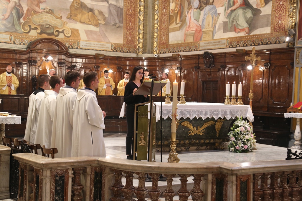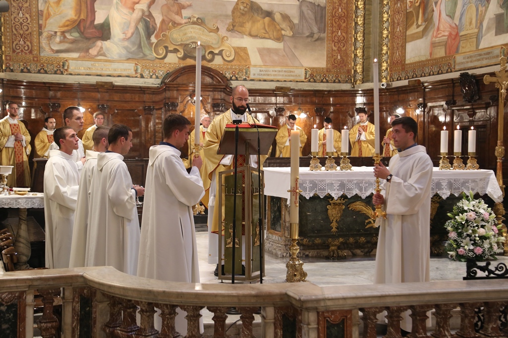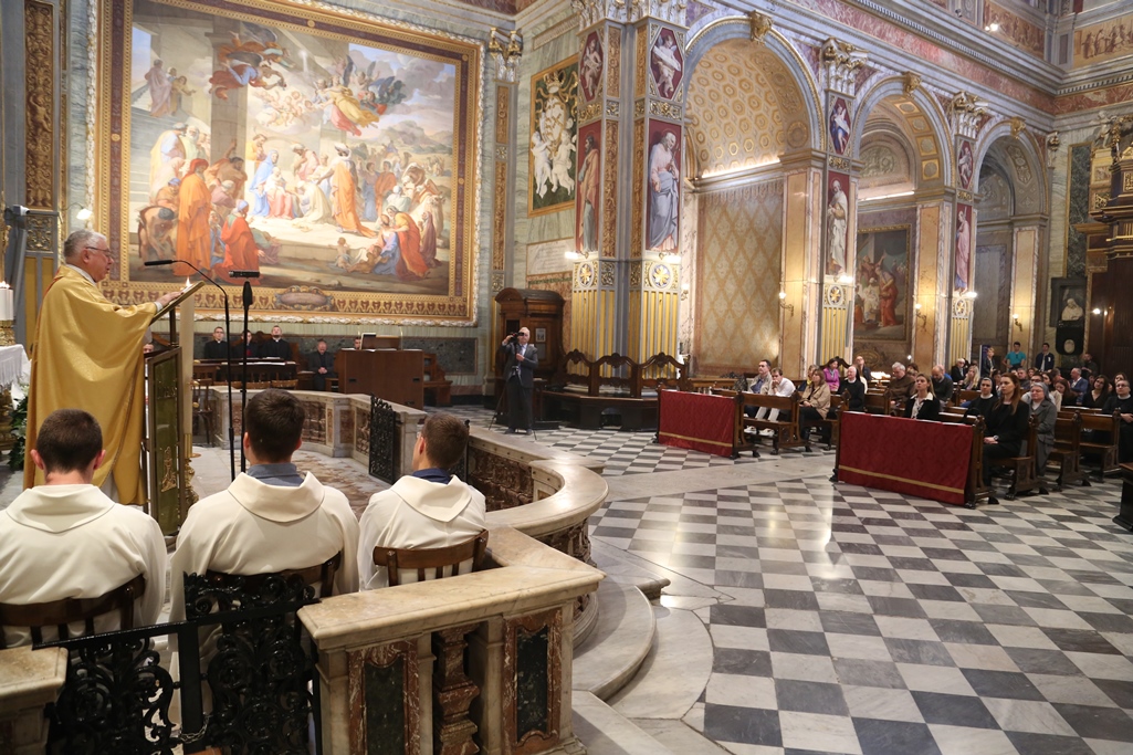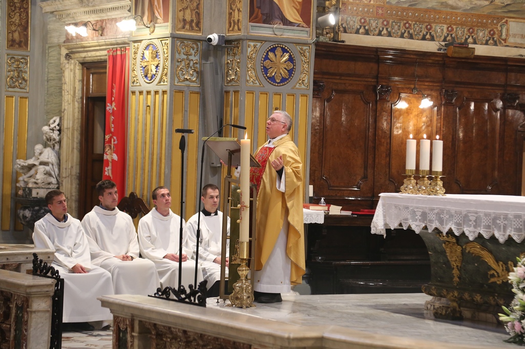 U uvodnom obraćanju prije poziva na pokajnički čin, mons. Batelja prisjetio se dana koje je kao pitomac proveo u Zavodu te naglasio kako zahvalnim srcem slavi svetu misu za žive i pokojne svećenike studente iz razdoblja svog boravka u Rimu, za sve preminule rimske studente, svećenike, bogoslove, pripadnike muških i ženskih redovničkih zajednica, vjernika laika, svih profesora, poglavara i odgojitelja. Također, istaknuo je kako je ova sveta misa domovinska proslava naših svetaca i blaženika čijih se obljetnica ove godine spominjemo: 40. obljetnica proglašenja svetim Leopolda Bogdana Mandića, 125. obljetnica rođenja blaženog Alojzija Stepinca, 95. obljetnica smrti i 20. obljetnica proglašenja blaženim Ivana Merza.