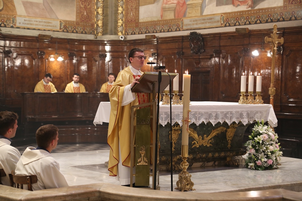 Prigodnu homiliju nadahnutu misnim čitanjima Šeste vazmene nedjelje, mons. Batelja započeo je razmišljanjem o naviještenom ulomku iz Djela apostolskih koji podsjeća na progon prvih Isusovih učenika. Oni su, kaže mons. Batelja, unatoč patnji i trpljenju, svjedočili, a jamac njihova svjedočanstva bio je od Isusa oporučno ostavljeni Duh Istine koji ih je učinio tješiteljima, braniteljima i posvetiteljima onih koji još ne vjeruju. U tom smislu, pozivajući se na misao bl. Alojzija Stepinca, mons. Batelja je istaknuo kako ne bi smjelo biti dana u kršćaninovu životu, a da se ne pomoli Bogu Duhu Svetome, Duhu Istine, s kojim je nužna suradnja osobito kad je u pitanju studij teologije. Jer, nastavio je: „Štoviše, koliko netko surađuje s Duhom Svetim toliko u njemu živi Isus Krist.“ Tu misao potvrdio je pozivajući se na sv. Augustina, Origena i njegova oca Leonidu te sv. Jeronima koji je činjenicu Kristove prisutnosti u ljudskom životu promatrao u zbilji svakidašnjeg života.