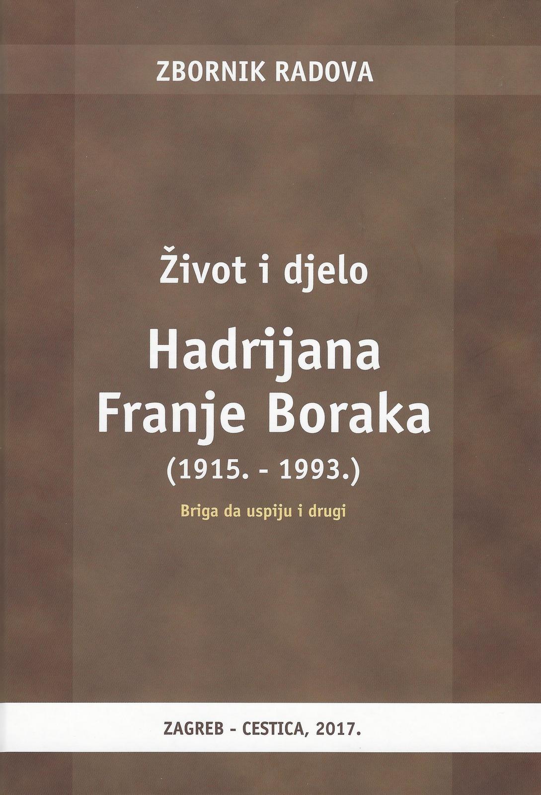 admin, 17.11.2017. U petak 17. studenoga 2017. u prostorijama Osnovne škole Cestica predstavljen je zbornik radova „Život i djelo Hadrijana Franje Boraka (1915.-1993.). Briga da uspiju i drugi“. Zbornik je plod međunarodnog znanstvenog simpozija održanog 21. studenoga 2015. godine u OŠ Cestica povodom stote obljetnice rođenja prof. dr. Hadrijana Franje Boraka, franjevaca kapucina rođenog 14. studenoga 1915. u Radovcu u župi Križovljan, danas u Varaždinskoj biskupiji.