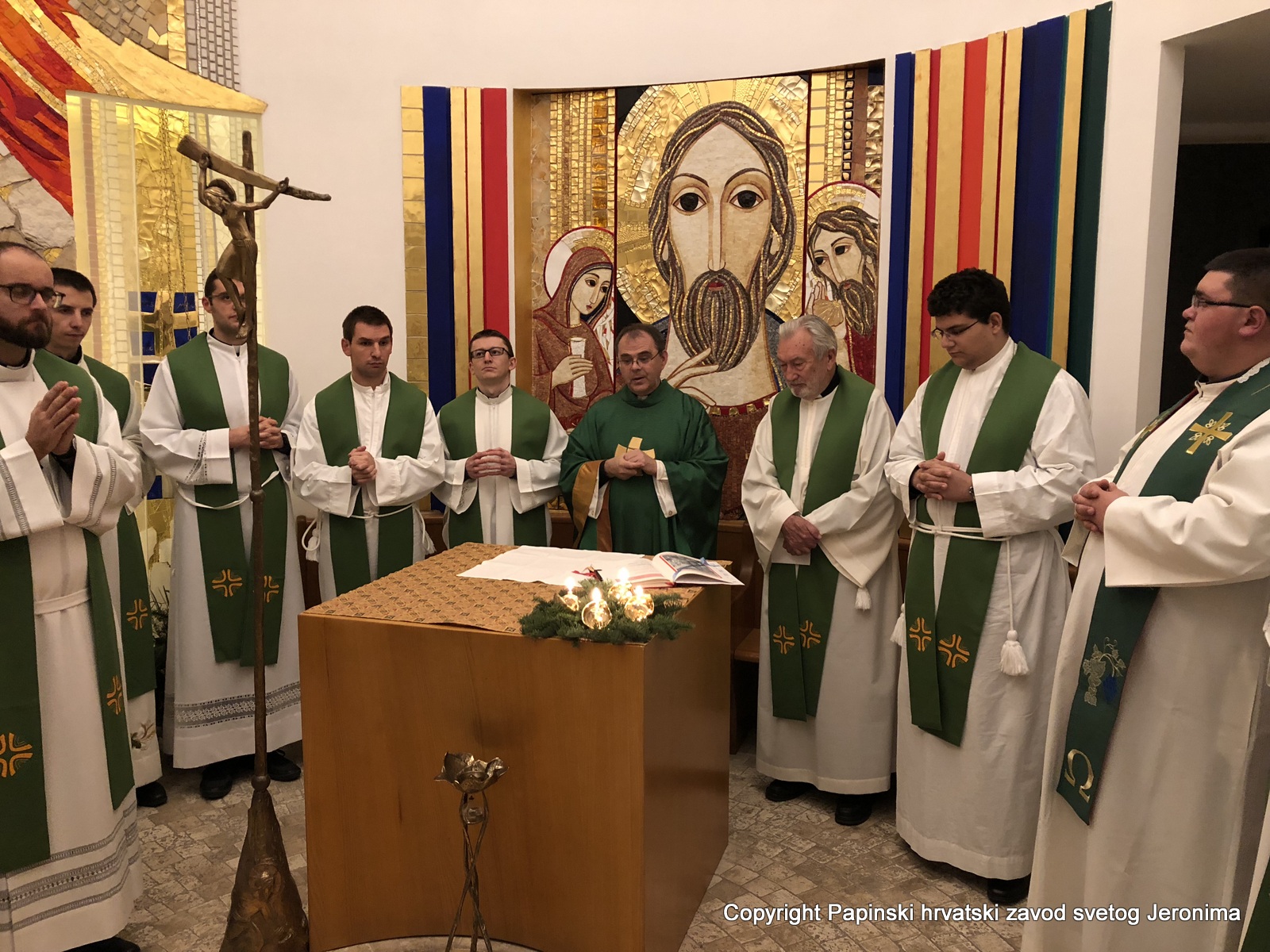 admin, 02.12.2017. U subotu, 2. prosinca 2017., svećenici studenti Papinskoga hrvatskoga zavoda sv. Jeronima, zajedno s rektorom preč. Božom Radošem i vicerektorom vlč. Markom Đurinom, te časnim sestrama, održali su mjesečnu duhovnu obnovu u Centro Aletti pri Papinskom orijentalnom institutu, u Via Paolina 25, u blizini papinske bazilike Santa Maria Maggiore.