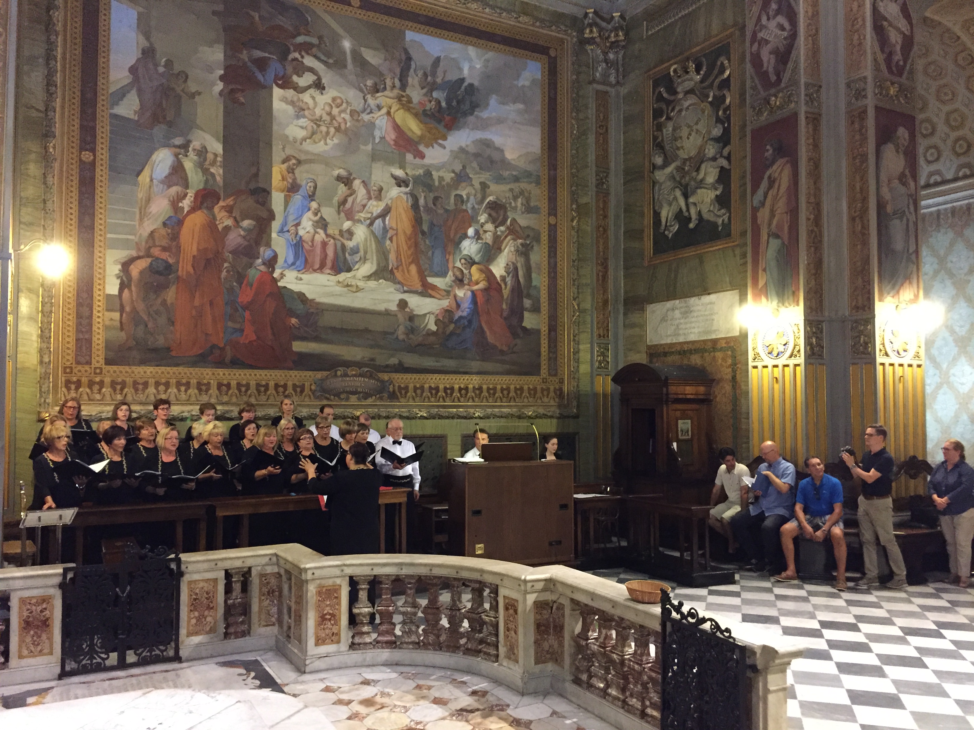 admin, 25.08.2017. U Hrvatskoj crkvi sv. Jeronima u Rimu u srijedu 9. kolovoza 2017. na večernjoj svetoj misi na hrvatskom jeziku sudjelovali su hrvatski hodočasnici iz Kanade. Pod misom su pjevali članovi Kanadsko-hrvatskog pjevačkog društva (Canadian Croatian Choral Society) iz Kanade, pokrajina Ontario, pod vodstvom dirigenta Edwarda Josepha Mavrinca. Misu je predvodio Marko Đurin, vicerektor crkve i zavoda sv. Jeronima koji je u kratkoj homiliji hodočasnicima predstavio lik sv. Jeronima, nebeskog zaštitnika crkve i zavoda. Osim članova zbora na misi su sudjelovali i njihovi članovi obitelji te prijatelji. Na misi su bili nazočni i veleposlanik Bosne i Hercegovine pri Republici Italiji Josip Gelo s obitelji te Zlata Penić Ivanko, savjetnik u Veleposlanstvu Republike Hrvatske pri Svetoj stolici. Više/più…