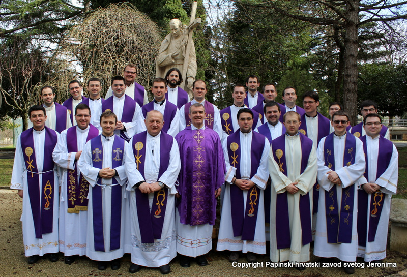 admin, 06.03.2015. Redovita godišnja vizitacija Papinskoga hrvatskog zavoda sv. Jeronima obavljena je od 2. do 6. ožujka 2015. godine u skladu s crkvenim pravnim propisima. Vizitaciju je obavio predsjednik Biskupskoga povjerenstva za Zavod sv. Jeronima u ak. godini 2014./2015., msgr. Ivan Šaško, pomoćni zagrebački biskup. Tijekom vizitacije upoznao se sa sveukupnim duhovnim i materijalni stanjem u Zavodu, te razgovarao, osim s poglavarima, i pojedinačno sa svim studentima i djelatnicima.