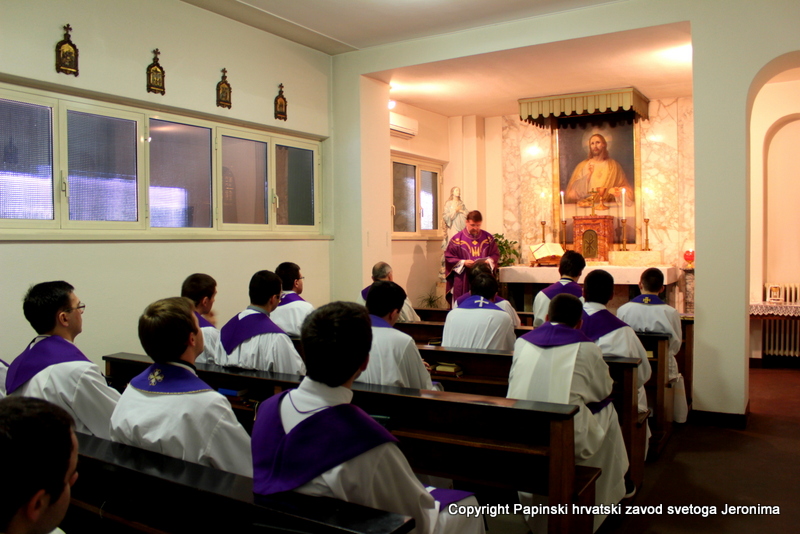 Pred završetak svoga pohoda Zavodu, msgr. Šaško predvodio je euharistijsko slavlje u zavodskoj kapelici u koncelebraciji s poglavarima i svećenicima studentima. U homiliji je potaknuo na razmatranje misnih čitanja drugoga korizmenog tjedna pod vidom nedjeljnoga evanđelja o Kristovom preobraženju. Ključne motive toga događaja, kao što su uzlazak i silazak te slava i križ, možemo prepoznati i produbiti u pojedinim evanđeljima toga tjedna, istaknuo je biskup Šaško. Više/più…
