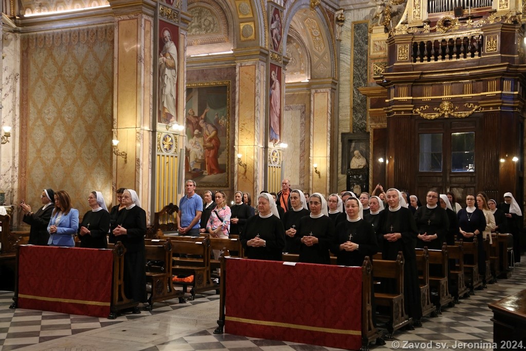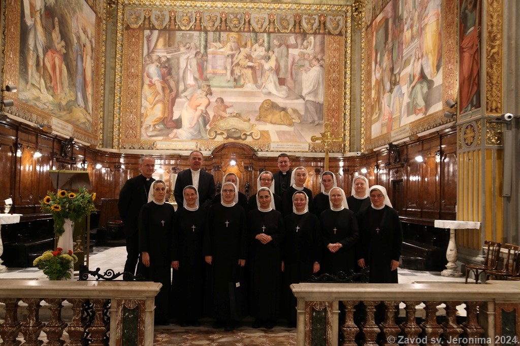 Proslavi 100. obljetnice dolaska i djelovanja sestara milosrdnica u Rim prisustvovala je i otpravnica poslova Veleposlanstva Republike Hrvatske pri Svetoj Stolici Tea Zupičić, ali i brojni svećenici, redovnici, redovnice, bogoslovi te hodočasnici iz Domovine. Misno slavlje animirao je Zbor sestara milosrdnica iz Splita. Nakon svete mise, Zbor sestara milosrdnica otpjevao je nekoliko pjesama i tako i pjesmom obogatio ovaj važni dan za sestre milosrdnice, ali i za Zavod. Među pjesmama koje su sestre otpjevale, bile su i dvije pjesme napisane upravo za ovu prigodu: „Sestre milosrdne“ i Sveti Jeronime“. Tekst za obje pjesme napisao je don Ante Mateljan, dok je obje uglazbio don Šime Marović, obojica bivši članovi Zavoda sv. Jeronima.