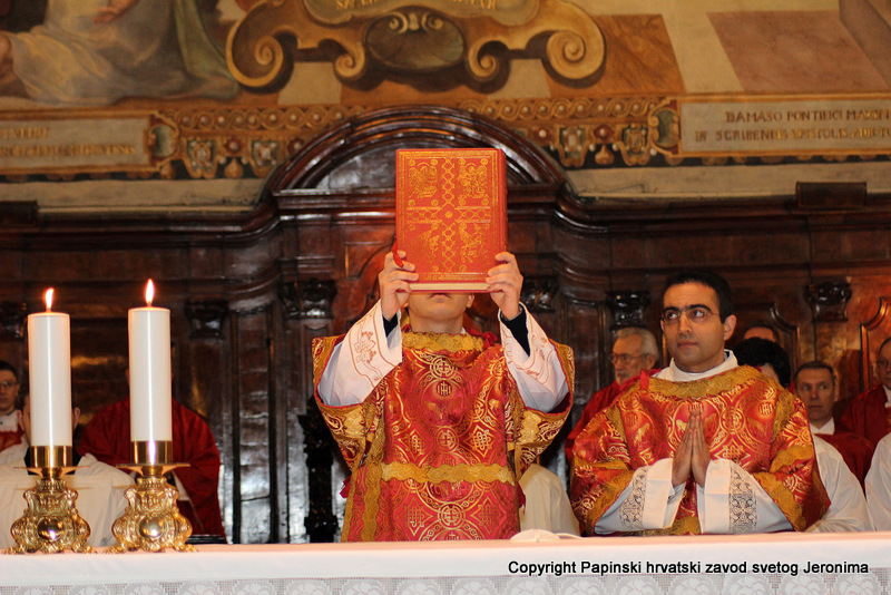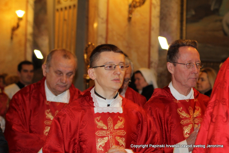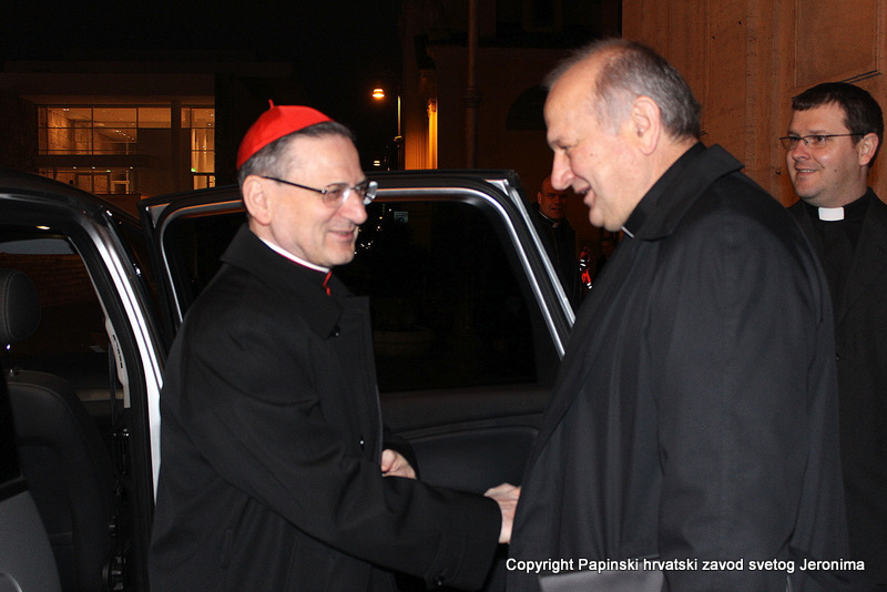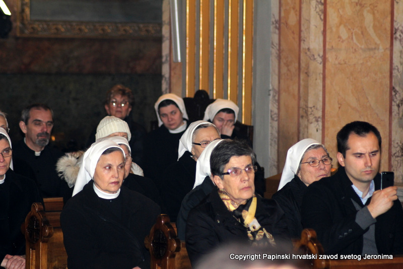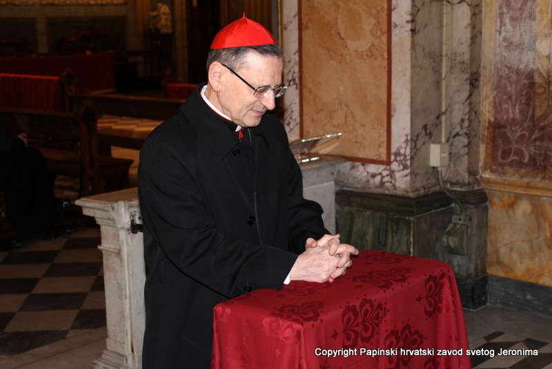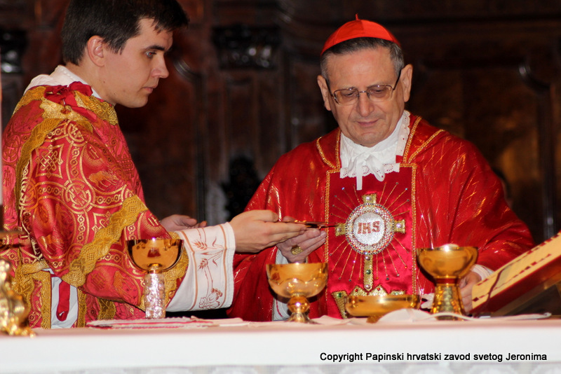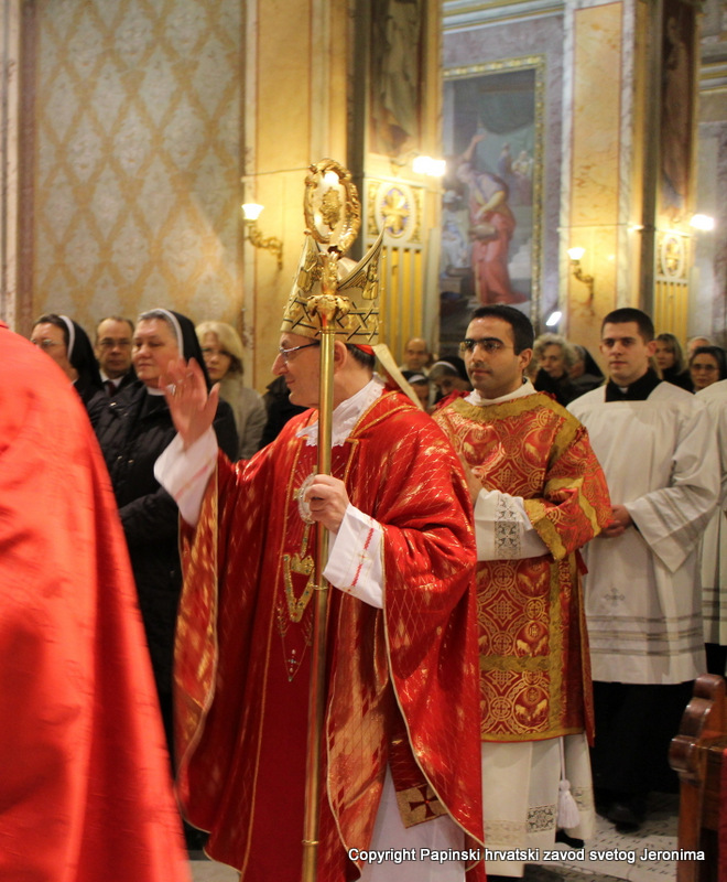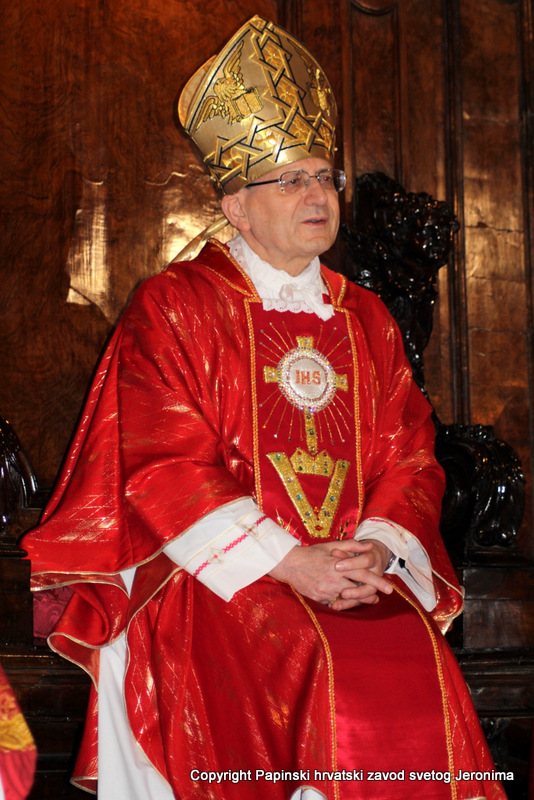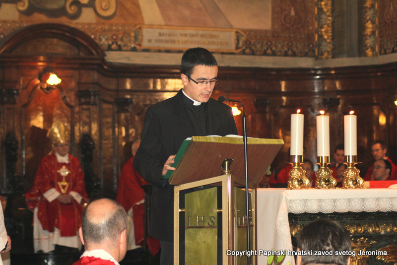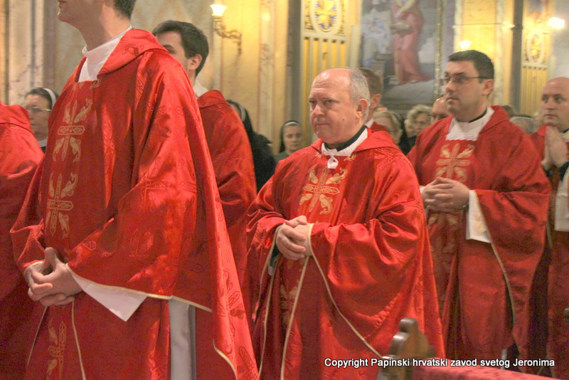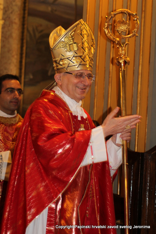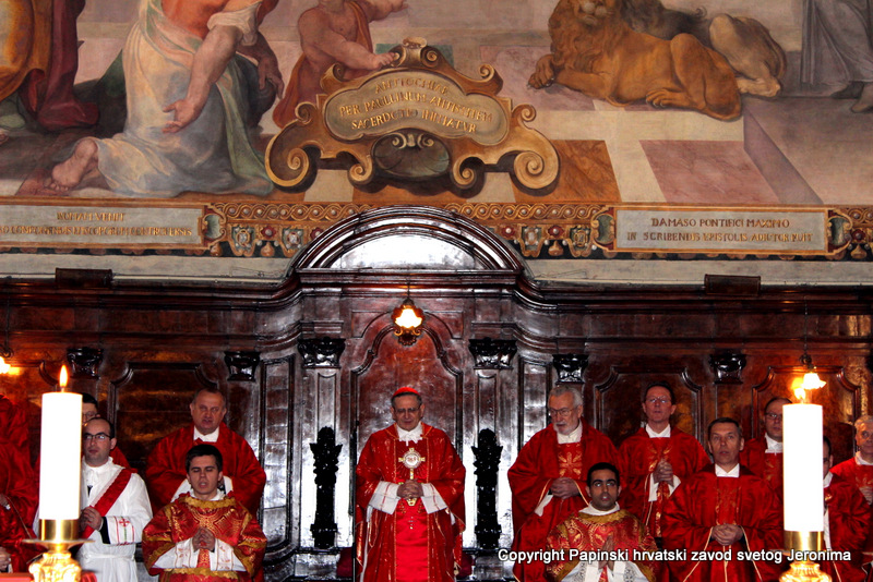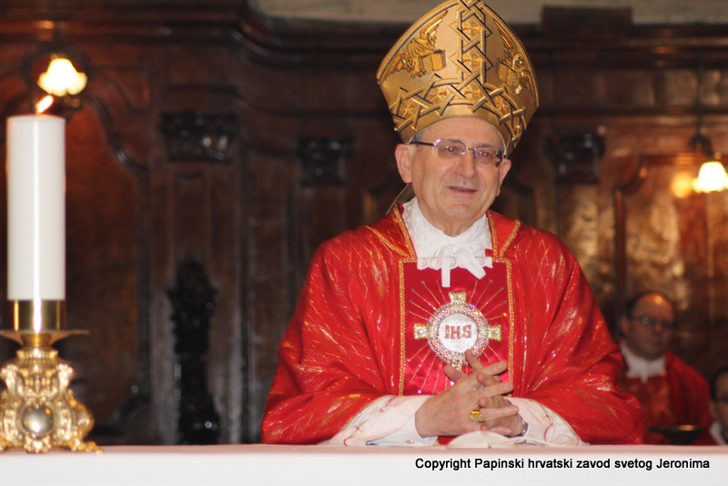 Na kraju euharistijskog slavlja rektor Zavoda sv. Jeronima, msgr. Jure Bogdan, pozdravio je sve nazočne i uputio riječi zahvale kardinalu Angelu Amatu. Msgr. Bogdan je zatim na hrvatskom jeziku pročitao poruku predsjednika Hrvatske biskupske konferencije, zadarskoga nadbiskupa msgr. Želimira Puljića koji je u pismu zahvalio kardinalu Amatu na njegovoj nazočnosti na beatifikaciji Miroslava Bulešića u Puli prošle godine.
