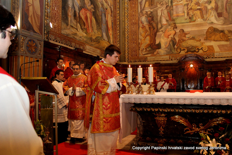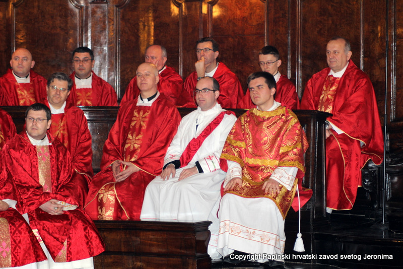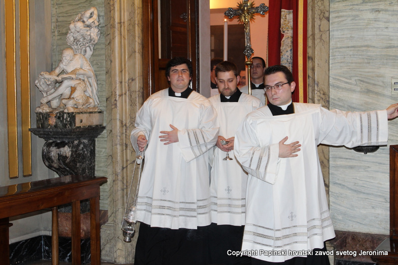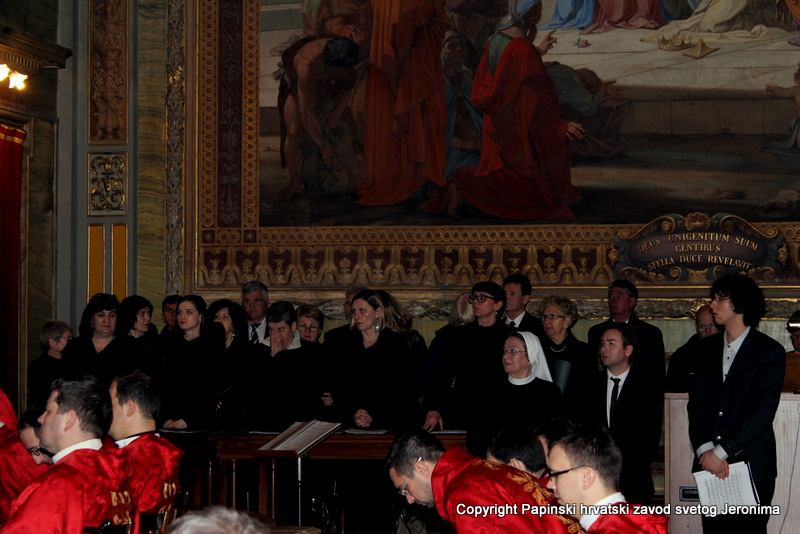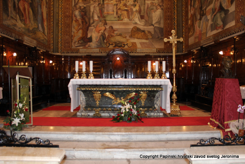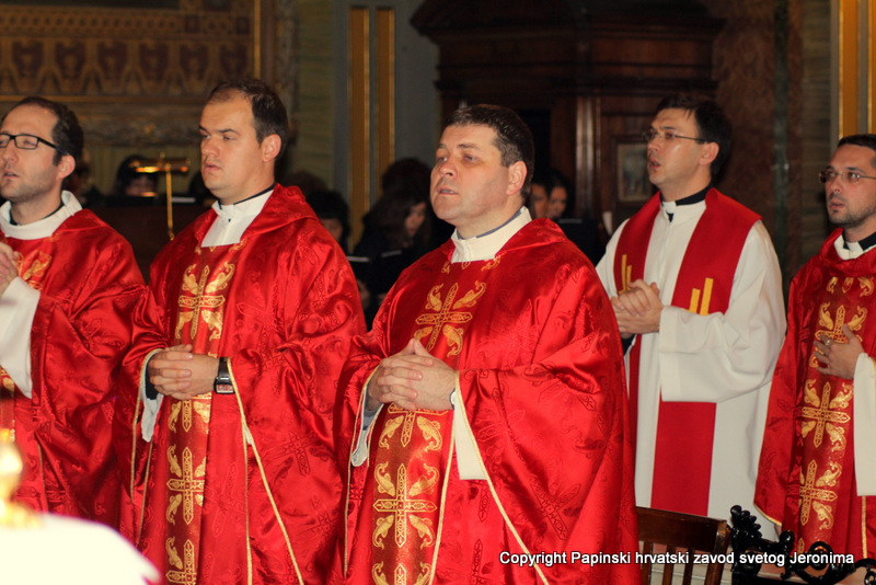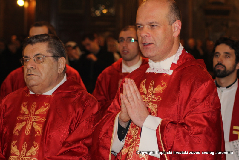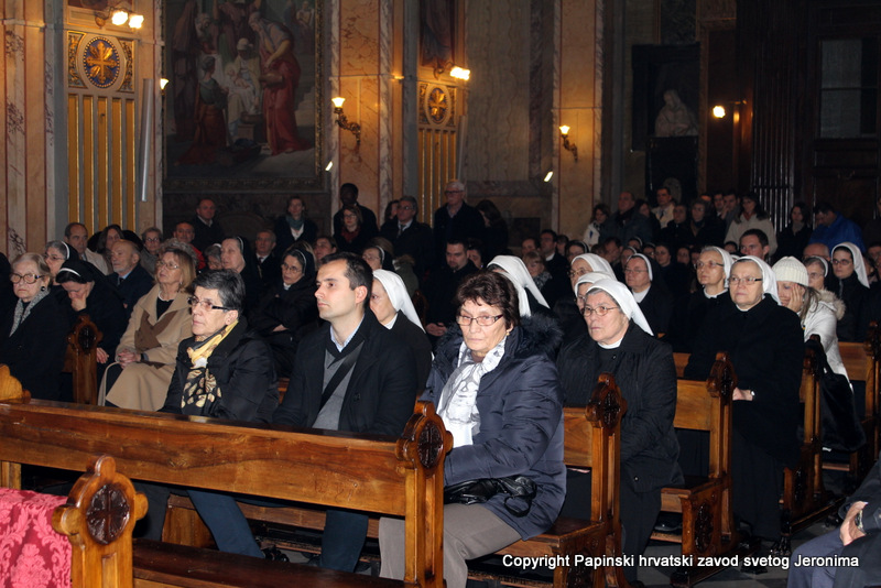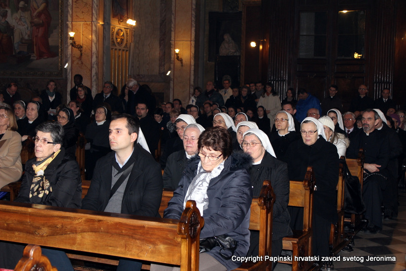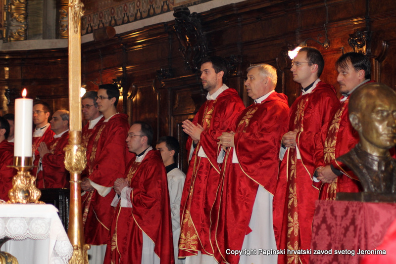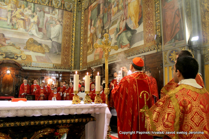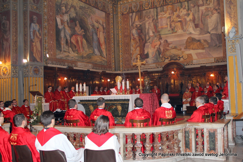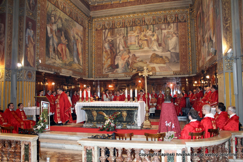 Hrvatska rimska zajednica svečano je obilježila 10. veljače 2014., liturgijski spomen i obljetnicu smrti blaženoga Alojzija Stepinca. Koncelebrirano večernje misno slavlje u Hrvatskoj crkvi sv. Jeronima u Rimu predvodio je kardinal Angelo Amato, pročelnik Kongregacije za kauze svetih. U koncelebraciji je sudjelovalo sedamdeset svećenika među kojima su bili: rektor Papinskoga hrvatskoga zavoda sv. Jeronima msgr. Jure Bogdan, vicerektor Marko Đurin,  duhovnik p. Mihály Szentmártoni SJ, nekoliko rektora papinskih rimskih zavoda, više profesora s crkvenih i državnih sveučilišta u Rimu, svećenici studenti iz Zavoda sv. Jeronima te drugi hrvatski svećenici koji studiraju ili djeluju u Rimu. Bilo je i više svećenika iz raznih naroda, štovatelja bl. Alojzija Stepinca. U asistenciji su bili bogoslovi iz Papinskog zavoda Germanicum et Hungaricum. Na misi su bili veleposlanik Republike Hrvatske pri Svetoj Stolici Filip Vučak, veleposlanik Bosne i Hercegovine pri Svetoj Stolici Slavica Karačić te više hrvatskih diplomatskih službenika pri Svetoj Stolici i u Italiji. Uz hrvatske vjernike iz Rima, te velik broj  hrvatskih redovnica, na misnome slavlju sudjelovali su brojni bogoslovi i sjemeništarci kao i talijanski vjernici štovatelji bl. Alojzija Stepinca. Za ovu prigodu neki hrvatski vjernici su doputovali iz Firence, Caserte i Napulja. Sv. misa slavljena je  talijanskome jeziku uz pjevanje hrvatskih litrugijskih pjesama. Misno slavlje animirao je zbor župe sv. Marka iz Makarske, koji su došli u Rim zajedno sa svojim župnikom msgr. Pavlom Banićem. Za orguljama je bio Umberto Kostanić, a zborom je ravnala s. Gracija Akmadžić.